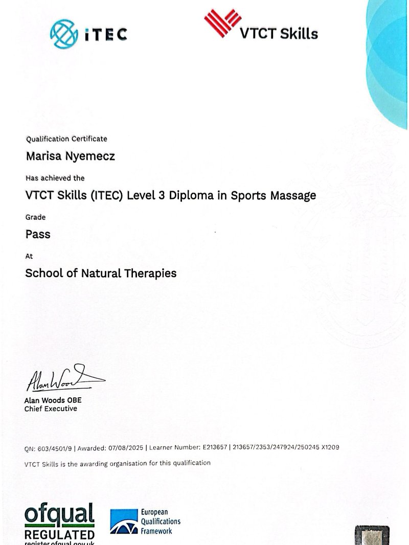 Clients often describe her touch as deeply focused, intuitive, and healing, leaving them feeling rejuvenated, lighter, and more connected in both body and mind.